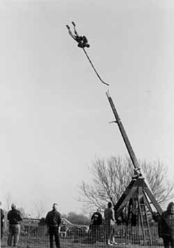 Otra de sus grandes hazañas fue la catapulta humana, añlgo que seguramente en el medioevo debería ser bastante practicado por sádicos generales… en este caso unos gents lo usaban para divertirse…