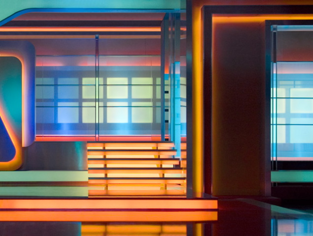 Imperdible la serie de imágenes de estudios de TV que, saturadas de luz y color, parecen fotogramas de una peli de ciencia ficción.