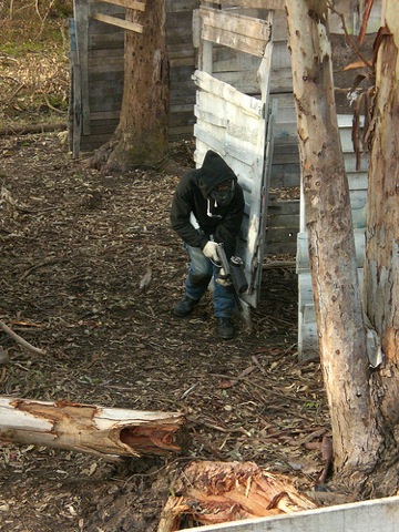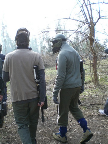 Ayer, volví a tener una sesión de paintball… Al igual que hace casi exactamente un año atrás, cuando regresaba de USA, me levanté temprano a la mañana, quizás un poco demasiado temprano, cargué mi bolso de ropa semicamuflada y me fui hacia la aventura. La aventura básicamente consistes en ir a un descampado en las afueras de Buenos Aires, en donde hay montadas un par de estructuras medio precarias y abandonadas, en dónde se desarrolla el juego de intentar “matar” a tus amigos… un tanto enfermito no?