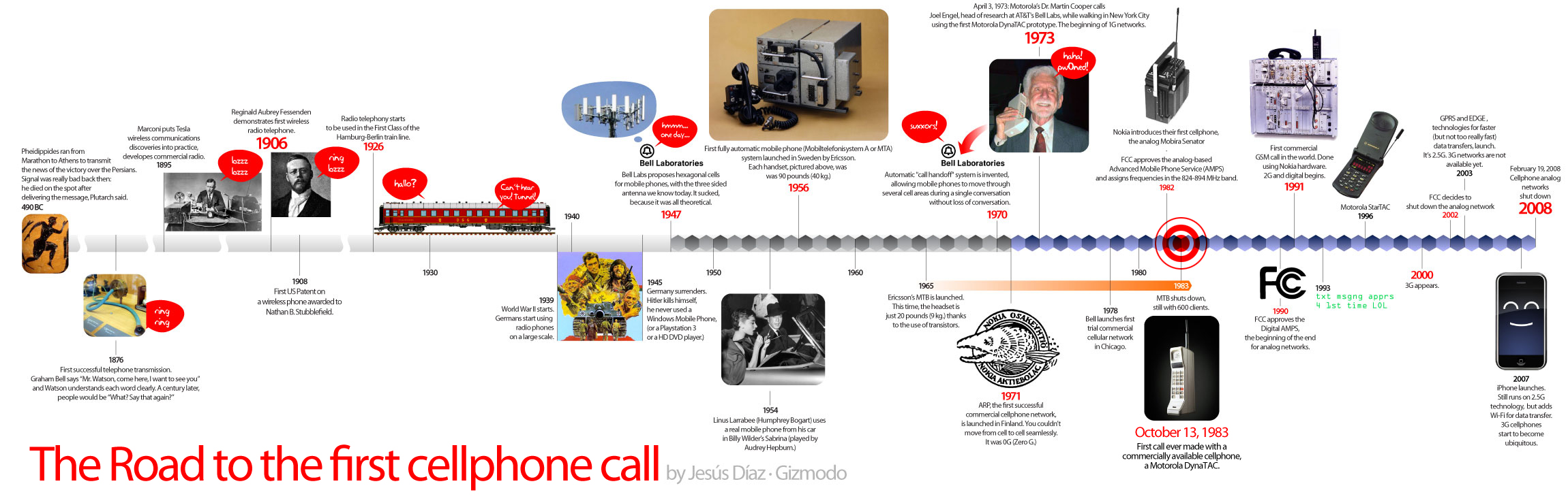 On October 13th 1983, Ameritech executive Bob Barnett called the grandson of Alexander Graham Bell using the the original brick Motorola DynaTAC 8000X. The mobile technology had improved in gigantic leaps in terms of size and services. Today the iPhone is showing the future of mobile technology. Although it is not doing everything that the technology supports, it is setting the guidelines on how things should work.