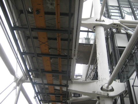 Casi solapándose con el “Pompi”, el edificio pregona del mismo estilo que su predecesor… todas las instalaciones por fuera… y en este caso, los “coups de résistance” los dan las escaleras de incendio (en acero inox), las grúas con las que construyeron el edificio (que se mantuvieron en la azotea) y los ascensores acristalados…