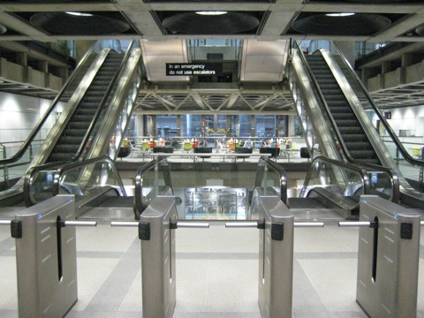Terminada en el 2005 la T5, tiene aún unas cuantas reminicencias del estilo que lo llevó a Rogers a la fama mundial allá por 1978… La arquitectura High Tech, y el amor por ese cruce entre un edificio y su infraestructura… A mi me remitió personalmente a la idea de que algún día uno de estos edificios van a ser el portal de acceso a los viajes interestelares (cómo los que decía Menem que iban a salir desde Córdoba… turco limado)… una envidia de terminal me agarró…
